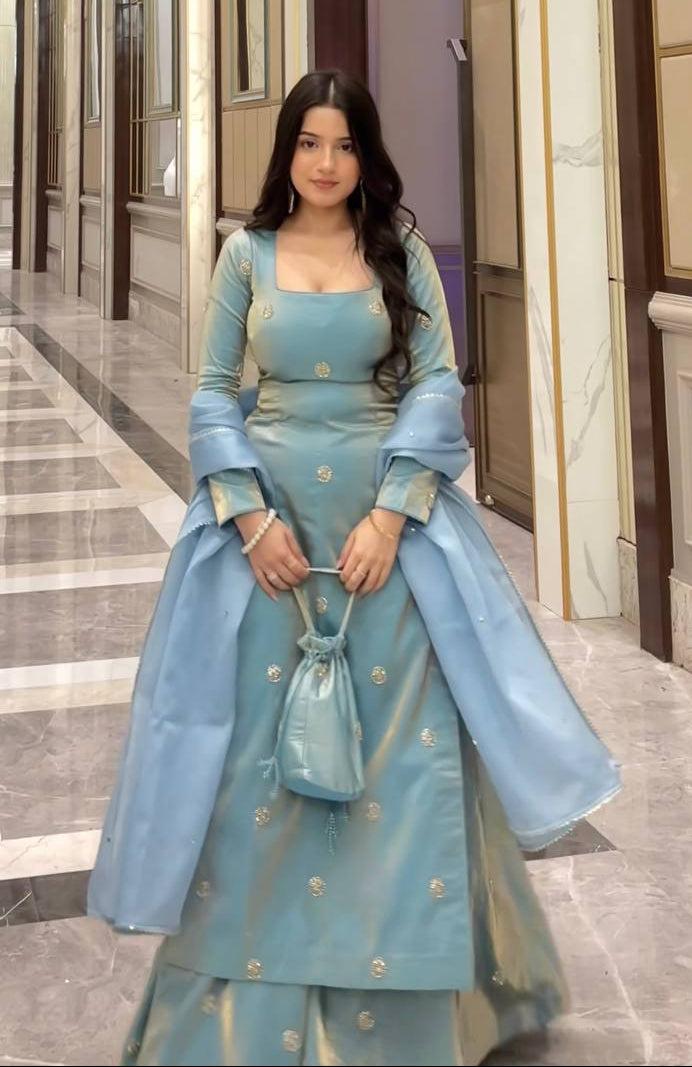 Premium Fandy Silk 3-Piece Set with Sequins Work & Designer Dupatta